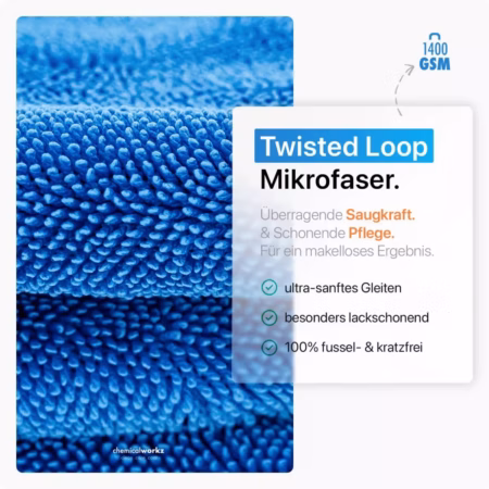 Sukeldu kiiresti kuivava rätiku maailma meie Shark Twisted Loop rätikuga. Tänu muljetavaldavale tihedusele (1400 g/m²) ja uuenduslikule keerutatud silmustega mikrokiustruktuurile tagab see rätik maksimaalse veeimavuse, jättes su auto värvipinna hetkega läikivaks ja kuivaks.